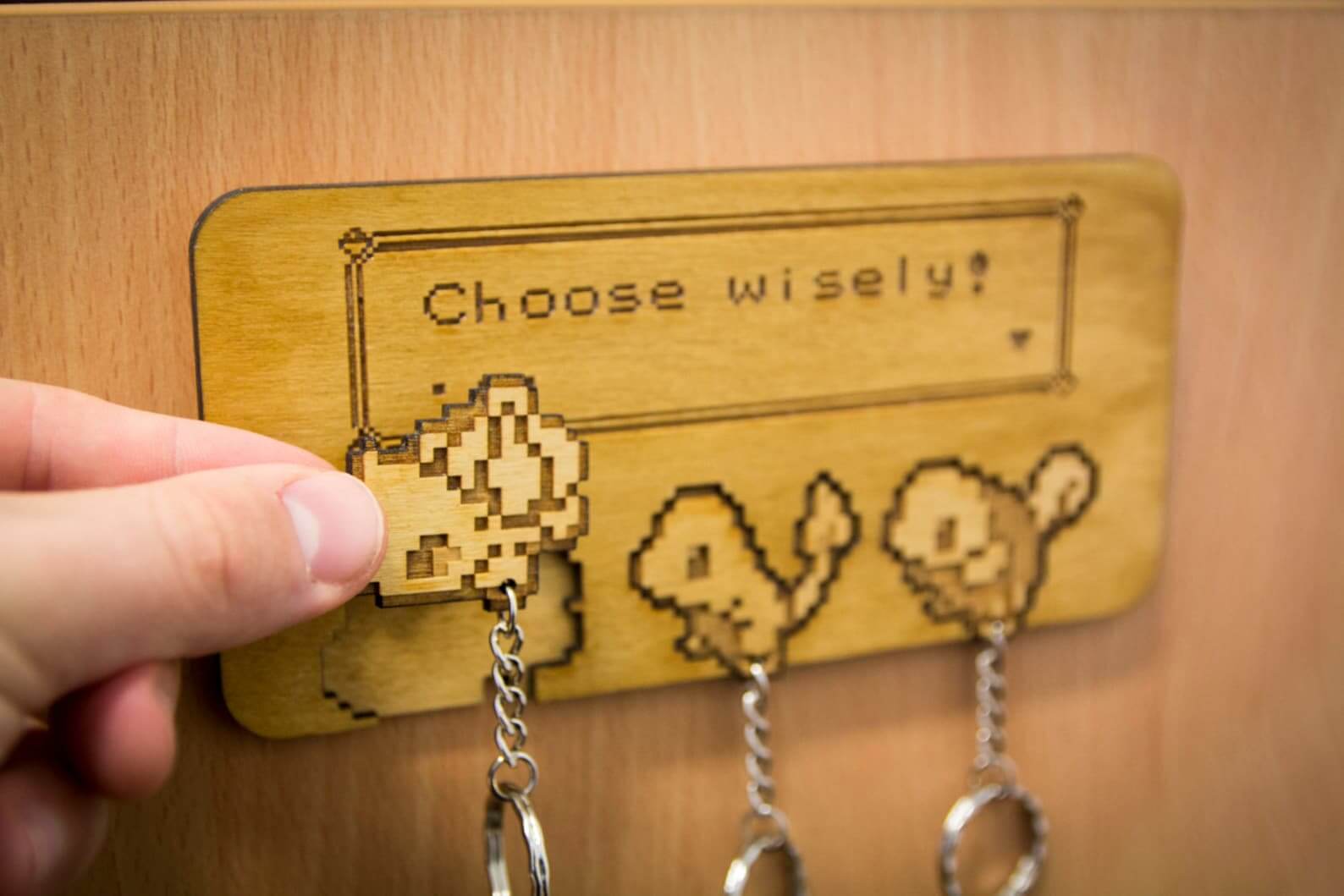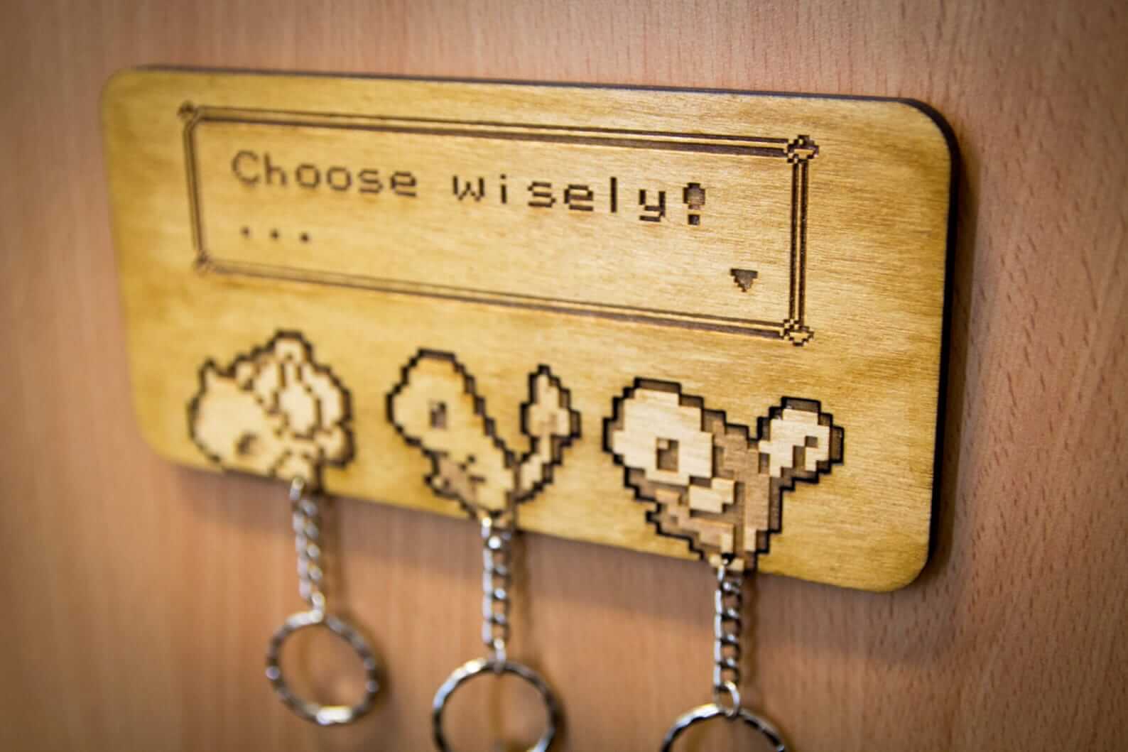 "Choose Wisely!" Engraved Keychain and wall mount, A Must-Have Geek Gift for Pokemon fans