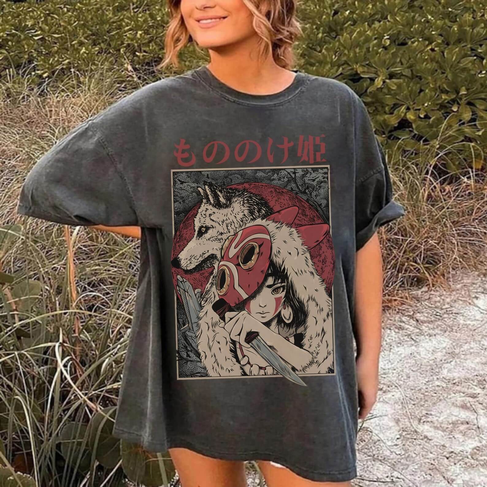 Step into the magical world of Studio Ghibli with this exclusive vintage Princess Mononoke T-shirt! Featuring an acid-washed, retro-inspired design, this tee is perfect for anime lovers and those who appreciate classic 90s aesthetics. Whether you're a fan of Princess Mononoke or just love unique, artistic fashion, this shirt is a wardrobe essential.